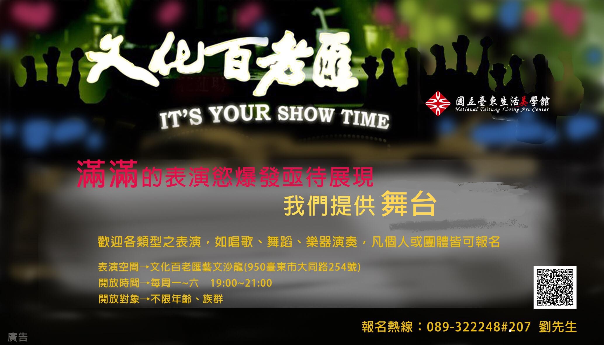 2026年演出節目表(晚上7點~9點)如有才藝想演出者請電洽 089-322248#207 劉先生報名4月18日-萩川演歌學苑演出4月25日-徐虹仙老師歌唱班成果發表 為求文化百老匯演出多元化,歡迎各類型之公益表演,如唱歌、舞蹈、樂器演奏,凡個人或團體無演出場地都可以報名活動演出。租借場地請依本館借用場地管理要點繳費!!https://event.culture.tw/TTCSEC/portal/Location/I5201MAction?uid=581