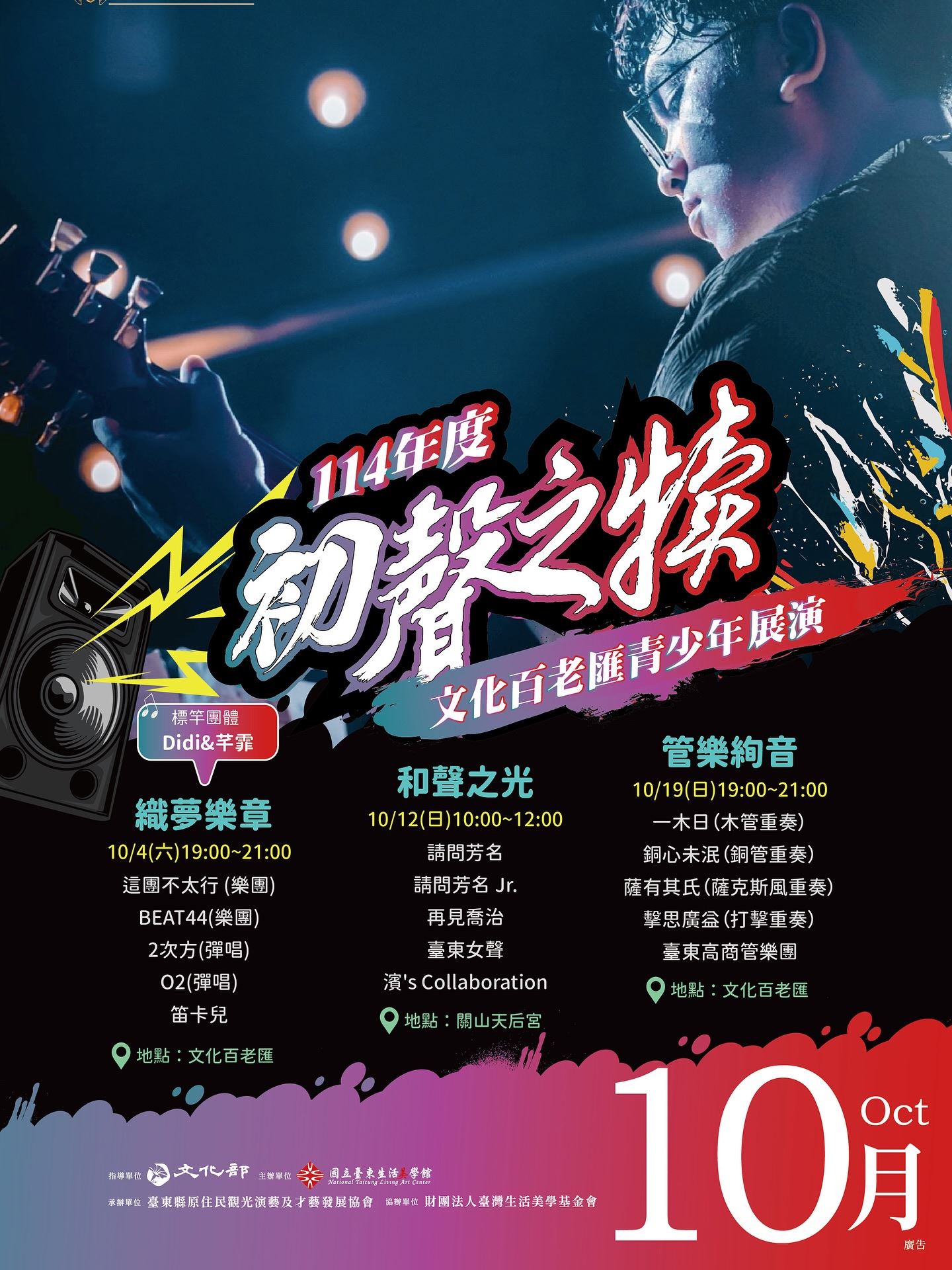 🍀文化百老匯青少年展演(10/12),臺東縣關山天后宮廣場